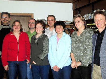 [Bild Lutz]: Der neue Vorstand des Akkordeonorchestervereins Aach-Linz (von links): Roland Rech, Sabine Stephan, Klaus Nesensohn, Brigitte Hübschle, Markus Wenzel, Marlene Hermann, Elke Blug und Wolfgang Löffler. |