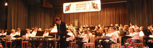 dieses Instrument bietet. Von unserer Mitarbeiterin Anthia Schmitt Die Stadthalle war bis auf den letzten Platz besetzt, als die jungen Spieler des Anfänger-Orchesters das Programm mit drei Musikstücken von Carl Schneider eröffneten. Vor allem die Eltern und Verwandten der jungen Künstler füllten den Saal und erfreuten sich an der beachtlichen Leistung ihrer ebenso stolzen wie aufgeregten Sprösslinge. Natürlich wurde auch mit anerkennendem Applaus nicht gespart. Den nächsten Part übernahm das Schülerorchester, das von der Artistengruppe der Aach-Linzer Grundschule effektvolle optische Unterstützung erhielt. Während die Jungmusiker ihren Instrumenten heißen Techno-Sound entlockten, balancierten beispielsweise Einradfahrer über die Bühne und Jongleure zeigten ihr akrobatisches Können. Als jüngste Solistin präsentierte sich die fünfjährige Daniela Dittler, die am Keyboard ein Ständchen zum Besten gab, bevor das Jugendorchester die Bühne betrat. Mit der Ouvertüre in C-Dur von Rudolf Würthner eröffnete das vielfach ausgezeichnete Orchester sein Programm ganz im Stil der Wiener Klassik. In die Welt der Pop-Musik ging es anschließend mit "A groovy Kind of Love" von Phil Collins. Dann senkte sich zur Überraschung der Zuschauer eine große Leinwand vor die Musiker, auf der während der nächsten Minuten die Verfolgungsjagden von "Tom und Jerry" zu sehen waren, während im Hintergrund "The Entertainer" erklang. Mit rhythmischem Applaus forderte das begeisterte Publikum eine Zugabe, die gern gewährt wurde. Während der Pause, in der der Verein mit einer verführerischen Bewirtung aufwartete, hatte das erste Orchester auf der Bühne Platz genommen. Auch in diesem Jahr war für jeden Musikgeschmack etwas einstudiert worden. Zunächst hob Löffler den Taktstock zum "Ungarischen Tanz Nr. 6" von Johannes Brahms. Danach gab es einen jazzigen Abstecher in die Welt von Duke Ellington und ein Medley mit den größten Erfolgen von Supertramp entführte das Publikum in die wilden 70-er Jahre. Bekannte Krimi-Musik aus den Fernsehserien "Der Kommissar" und "Derrick" wurden mit dem "Miss Marple-Thema" und dem klassischen "Kriminal-Tango" zu einem spannungsgeladenen Puzzle verarbeitet, bei dem auch der Schuss samt anschließendem Schrei - von Annette Vöhringer markerschütternd ausgestoßen - nicht fehlte. Mit einer flotten Samba beendete das Orchester sein Programm. Allerdings war das Publikum noch lange nicht bereit, nach Hause zu gehen. Mit heftigem und andauerndem Applaus forderte es drei Zugaben, bis sich der Vorhang nach einem gelungenen Abend vor den verausgabten Musikern senkte. Durch das abwechslungsreiche Programm führten Stefan Scherzinger und Roland Rinderle, die zu jedem Musikstück eine ausführliche Erläuterung parat hatten. |