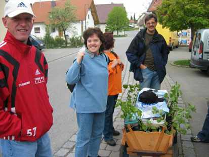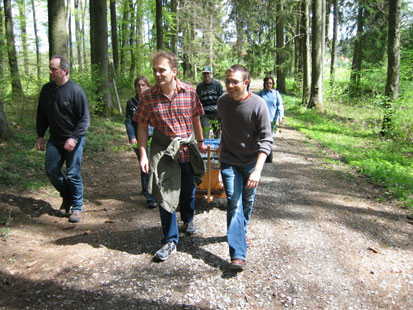 war, ging es fröhlich durch mehrere Wälder und Dörfer zu einem Grillplatz. Zwischendurch wurde immer mal wieder eine kleine Rast gemacht, damit der Proviant weg kam und der Leiterwagen leichter wurde. Gegen 13:00 Uhr erreichte man den Grillplatz und gönnte sich eine 2 stündige Mittagsrast, ehe man sich wieder auf den Rückweg nach Aach-Linz machte. Dort angekommen fuhr man nach Ostrach um dort die diesjährige Maiwanderung mit einem "Abschlussbier" zu beenden. |