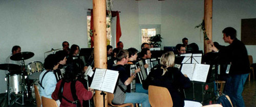 soweit. Das 1. Orchester fuhr froh gelaunt zum Probenwochenende 2002 nach