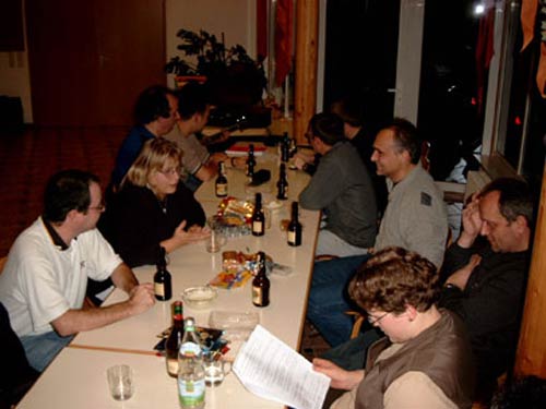 Tennenbronn. Zur mitternächtlichen Stunde kamen wir dort an, wo uns schon die ersten sehnsüchtigst erwarteten. Unsere Studenten sind nämlich direkt von ihren Studienorten angereist und sind pünktlich angekommen. Nachdem unser Transporter mit den Getränken verspätet angekommen ist konnte das Fest beginnen. Am Samstag und Sonntag standen erst mal einige Stunden Proben an. Den ein oder anderen taten dann am Sonntag um 14 Uhr nach der letzten Probe schon gewisse Körperstellen vom vielen spielen weh. Aber dass Proben hat sich gelohnt, unsere Programm hört sich jetzt richtig gut an. Und so führen wir um 15 Uhr nach einem gemeinsamen Abschlussessen wieder nach Hause. Dem Organisationsteam dieses "super Hüttenaufenthalts" wird ein großes Lob ausgesprochen denn die Hütte war für die Gemeinschaft und dass musikalische Zusammenspiel ein voller Erfolg. Wir freuen uns schon auf den nächsten gemeinsamen Hüttenaufenthalt, der bestimmt kommt. |